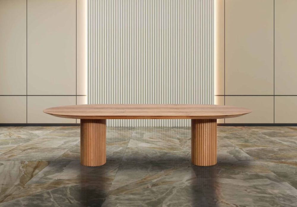 • 8 posti → rettangolare 220×100 cm o rotondo Ø160 cm.